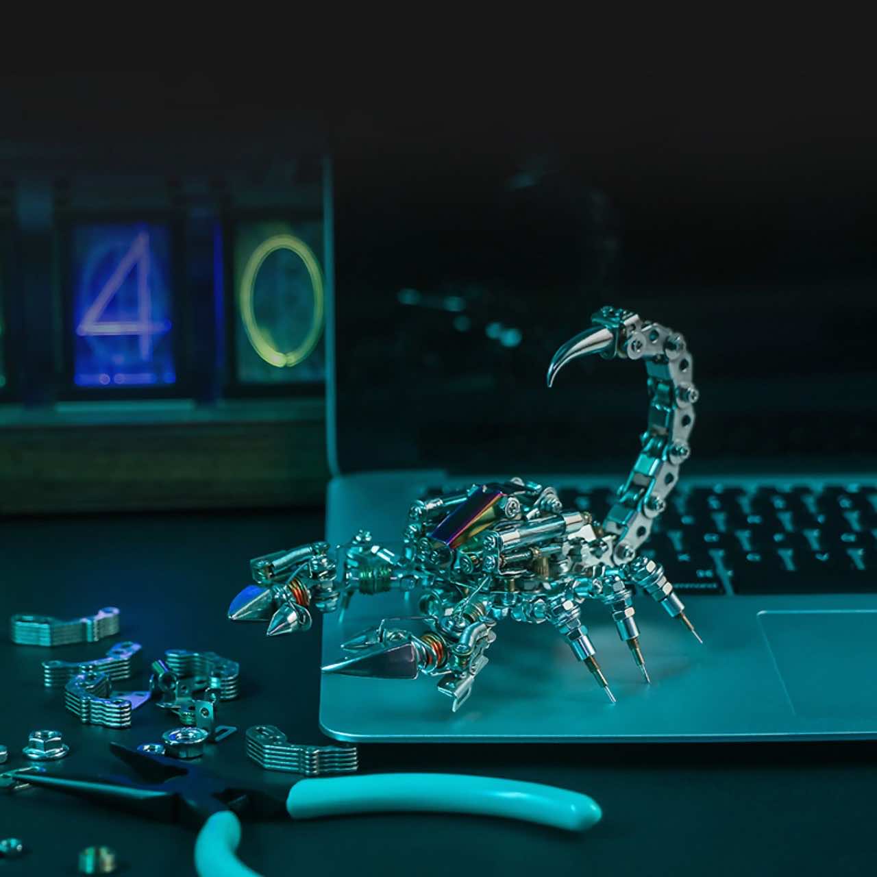 Build a 373-piece cyber-creature that glows, flexes, and owns any tech-savvy desk. Digital Scorpion is equal parts mindful model kit and futuristic showpiece—perfect for lovers of all things neon, dystopian, and downright cool.